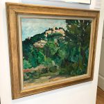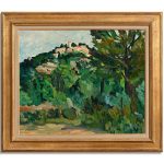 The same view of La Roche-Guyon (a picturesque town on the Seine northwest of Paris) was famously painted by Georges Braque in 1909 in an early demonstration of the Cézanne-inspired Cubist style. As Robert Hughes said: ‘Picasso knew lots of things; Braque knew one big one: Cézanne.’ Dunlop was similarly obsessed by the French genius as this decidedly Cézanne-esque painting testifies.