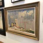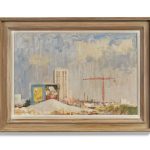 Featuring modern buildings, a crane and an advertising billboard, this painting is an unusual and interesting departure from the more conventionally picturesque scenes of much of Seago’s work.